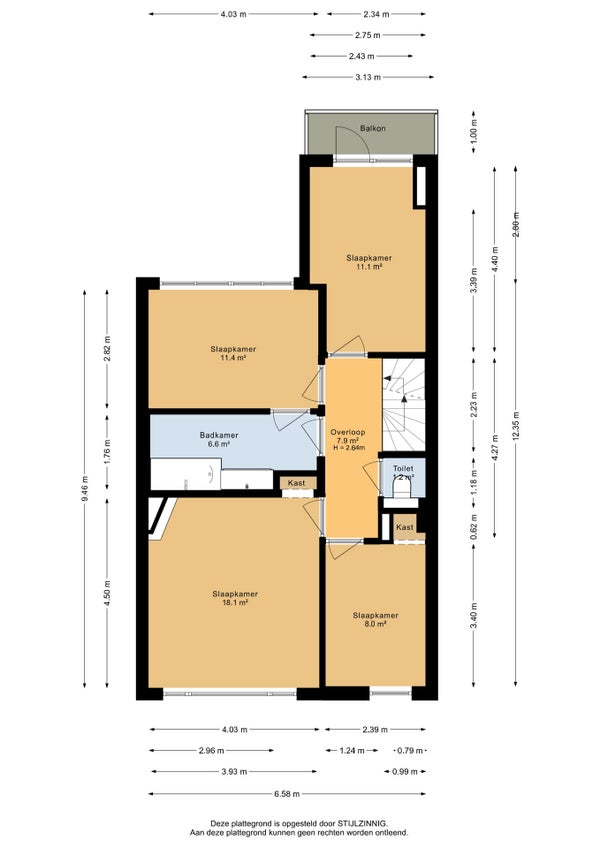 - De bovenwoning heeft een woonoppervlakte van 171 m² en beschikt over 7 kamers, waarvan 5 slaapkamers;