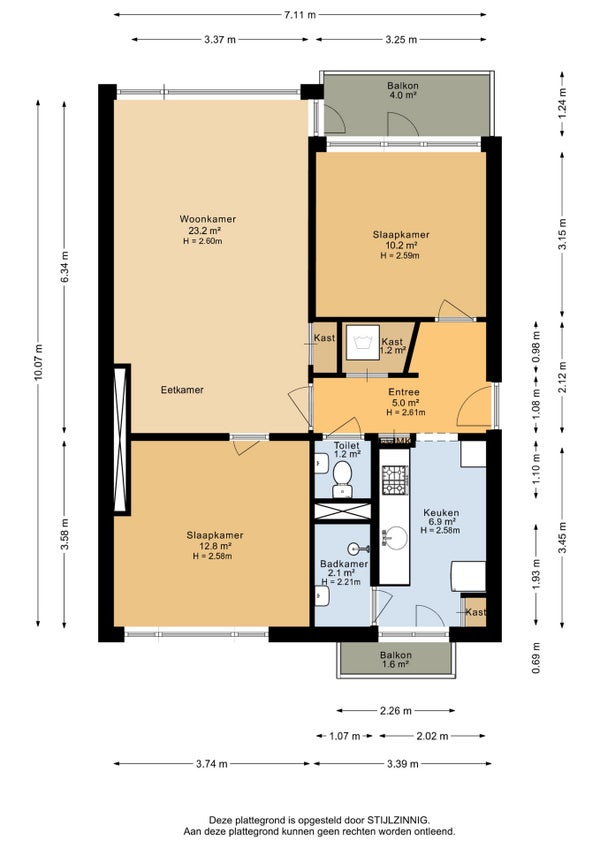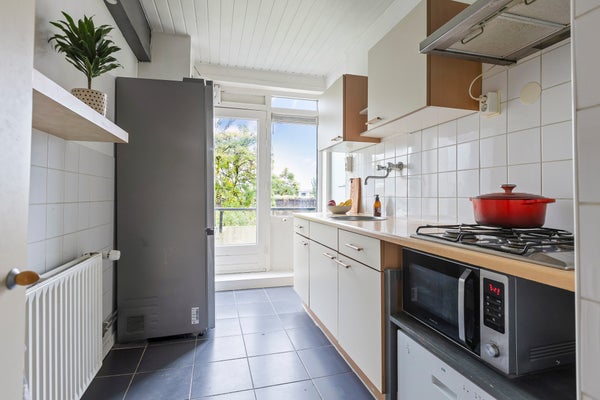 - De portiekflat heeft een woonoppervlakte van 66 m² en beschikt over 3 kamers, waarvan 2 slaapkamers;