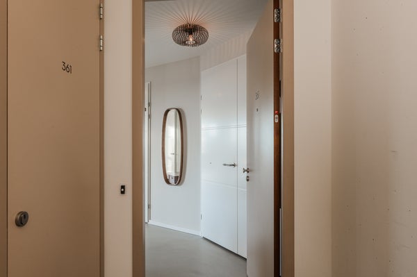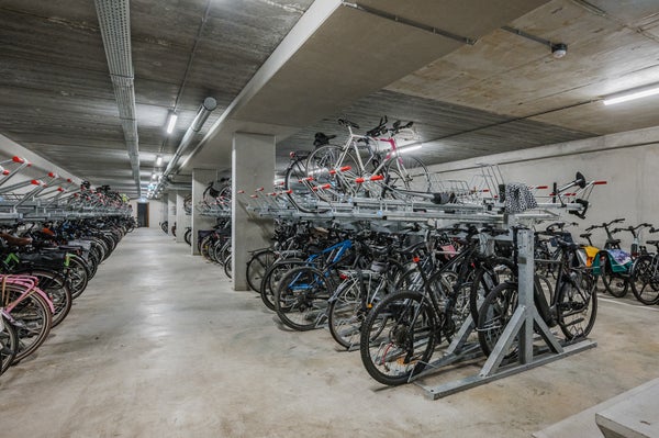 Ground floor: Secure central hall with mailboxes and doorbells. Spacious communal bicycle storage. Bringme mailbox service, double elevator, and the stairwell. The elevators also provide access to the underground parking garage.