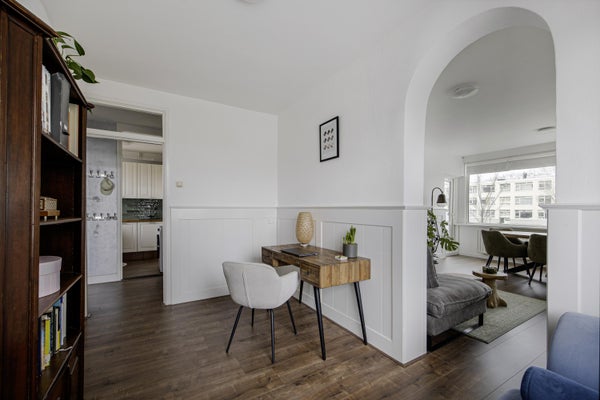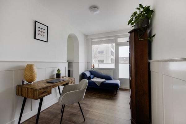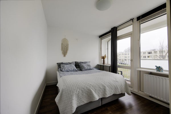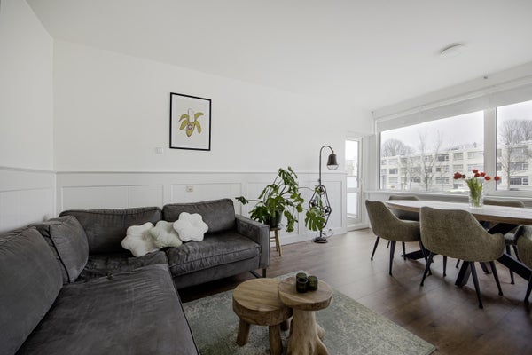 Dit lichte en zonnige 4 kamer appartement heeft aan de zijkant een zonnig balkon op het westen en aan de achterzijde een 2e balkon op het zuiden. Je kunt hier dus heerlijk de hele dag en avond van het zonnetje genieten. Heerlijk lichte woonkamer met leuk zicht op het plantsoen. In 2024 is de woning voorzien van een moderne eigentijdse keuken met een inductie kookplaat, een oven, vaatwasser en een houten aanrechtblad. Hier is ook de aansluiting voor de wasmachine. Modern zwevend toilet met fonteintje. De moderne badkamer is in 2024 vernieuwd en heeft een ligbad/douche met regendouche en een wastafelmeubel. Verder zijn er nog 3 slaapkamers. Op de parterre is een eigen berging aanwezig. Aan de achterzijde is de woning voorzien van kunststof kozijnen met dubbele beglazing.
