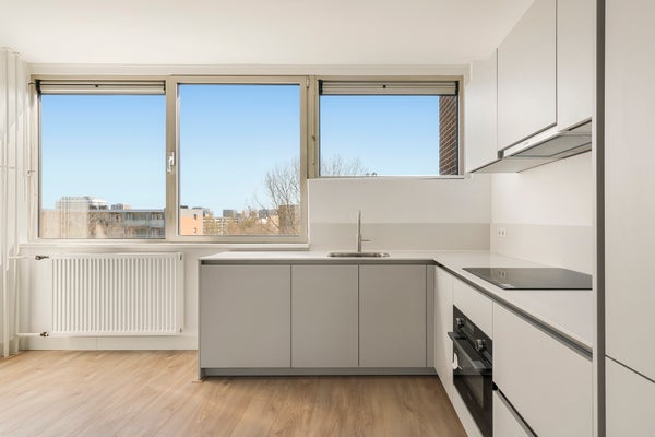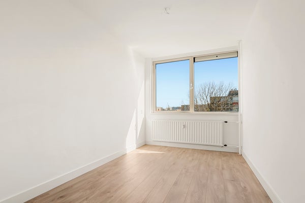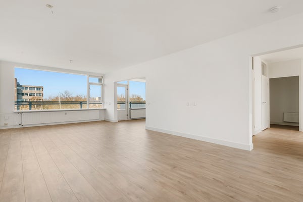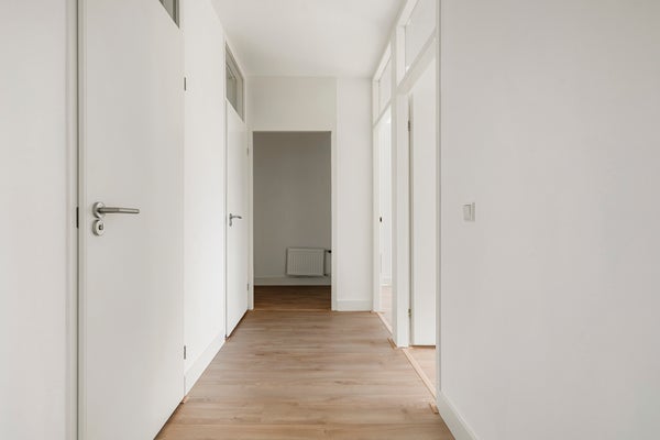 - De portiekflat heeft een woonoppervlakte van 100 m² en beschikt over 4 kamers, waarvan 3 slaapkamers;