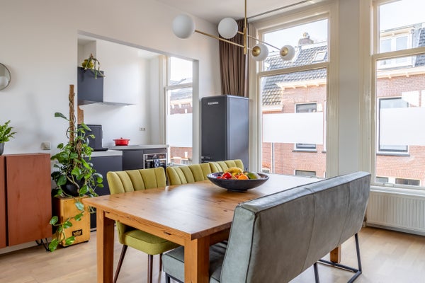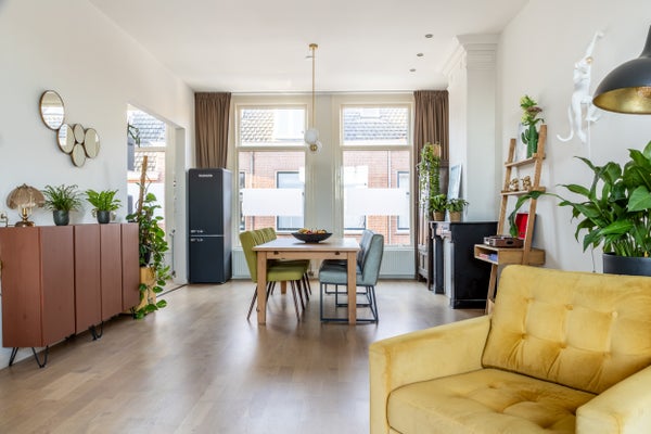 Deze lichte en ruime bovenwoning aan de rustige Voorhelmstraat ligt op de rand van het centrum en biedt een perfecte combinatie van ruimte en karakter. Met een woonoppervlak van circa 119 m² beschikt het appartement over vier kamers, waaronder drie slaapkamers en een ruime woonkamer die van voor naar achteren loopt, met grote raampartijen en een balkon. De open keuken, uitgevoerd met diverse inbouwapparatuur, sluit aan op de eetruimte, waardoor het een fijne leefruimte is.