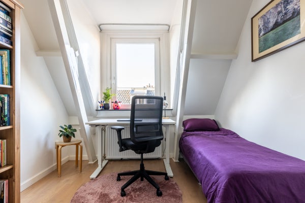 De tweede verdieping heeft een sfeervolle overloop met daklicht, een riante slaapkamer aan de achterzijde en nog twee kamers aan de voorzijde. De badkamer is gemakkelijk in gebruik met een inloopdouche en wastafel. Gelegen dichtbij het stadscentrum, zijn winkels, restaurants en parken op loopafstand. Parkeren is mogelijk met een bewonersvergunning.