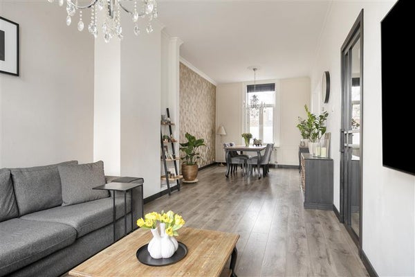 Riante indeling over drie verdiepingen: Met een eigen entree, een lichte woonkamer met hoog plafond, een open keuken, zes slaapkamers, en maar liefst twee moderne badkamers.