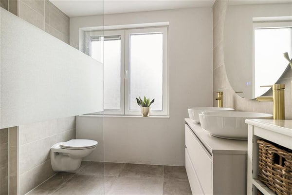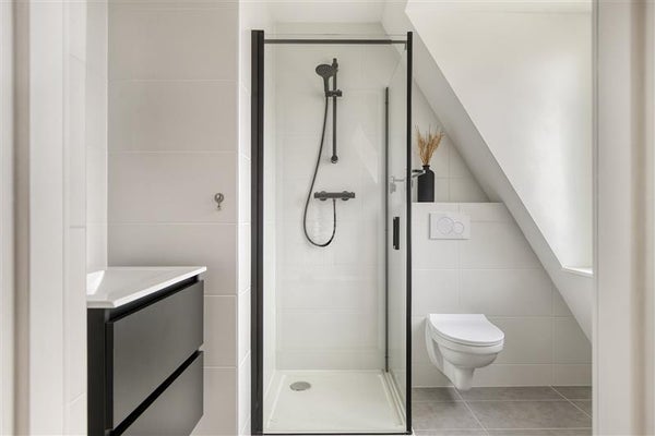 Op de tweede verdieping heb je de beschikking over drie goed bemeten slaapkamers en een moderne badkamer. De badkamer is gesitueerd aan de voorzijde en voorzien van een dubbele wastafel, een toilet en een inloopdouche.
