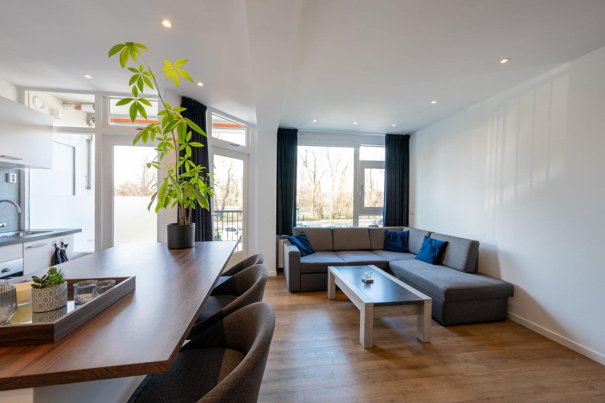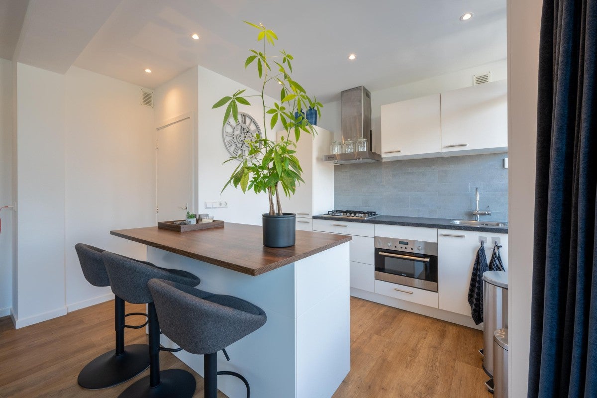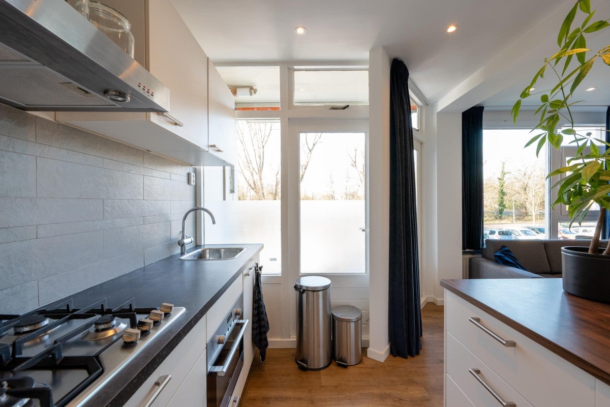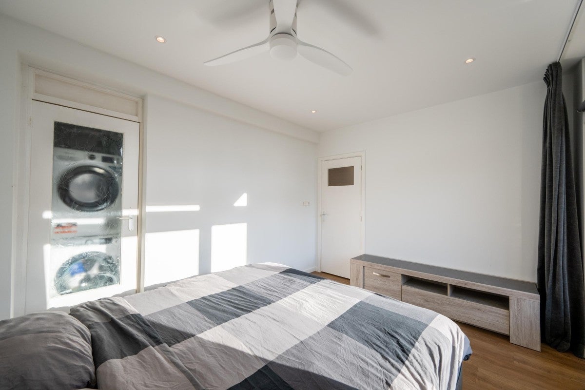 Dit lichte 2-kamer appartement van 47 m² in Haarlem Zuidwest bevindt zich op de hoek van de eerste verdieping van het appartementencomplex "Haarlem Hoog" en beschikt over twee zonnige balkons; één op het zuiden en één op het westen. De ideale plek voor een single of jong stel die houdt van het buitenleven, met de mogelijkheid om de hele dag van de zon te genieten. De woning omvat een hal met inloopbergkast, een lichte woonkamer met PVC-vloer en een open keuken met inbouwapparatuur, inclusief vaatwasser. De slaapkamer heeft toegang tot het tweede balkon en biedt ook toegang tot de berging met aansluitingen voor wasmachine en droger. De moderne badkamer is van alle gemakken voorzien.