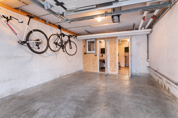 Op de begane grond bevindt zich de grote verrassing van dit appartement: een unieke en bijzonder ruime garage (38 m²). Via het gezamenlijke trappenhuis loop je binnendoor direct naar deze garage. Hier vind je niet alleen volop ruimte, maar ook een praktisch keukenblok en aansluitingen voor wasmachine en droger. De garage is bovendien voorzien van een elektrische overheaddeur. Aan de zijkant van het complex bevindt zich tevens een privé (fietsen)berging (4 m²).