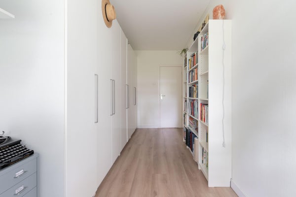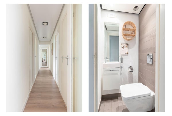 Het balkon is ruim, is gelegen op het zuiden en heeft een prachtig uitzicht over het aangelegde park. Ideaal om even buiten te wandelen, of om je kinderen op zichtafstand lekker te laten spelen. We lopen de gang in, hier begint de rest van de verrassing: doorgang tot maar liefst vier volwaardige (slaap)kamers, een fraaie badkamer en een separaat toilet. De badkamer is ruim en voorzien van een ligbad, wastafelmeubel met verwarmde spiegel, separate douche en vloerverwarming.