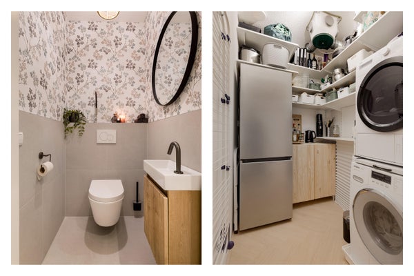Entree/hal met video-intercom. Separaat modern zwevend toilet met fonteintje. Ideale bergruimte met wasmachine-/droger aansluiting.