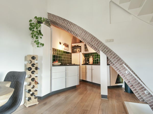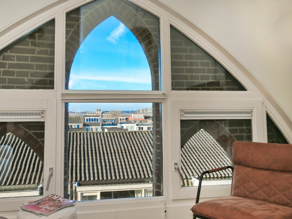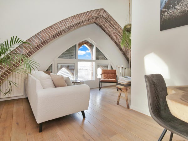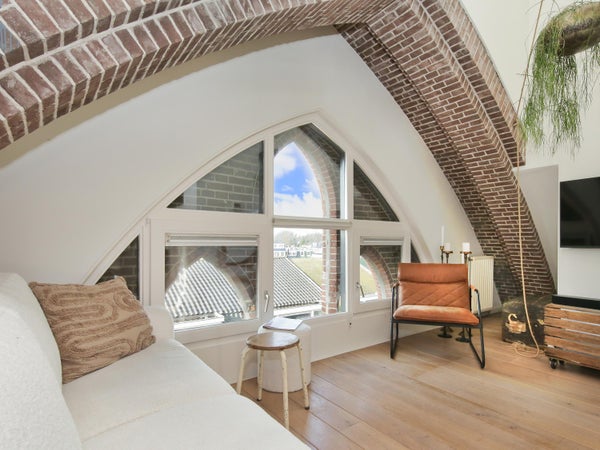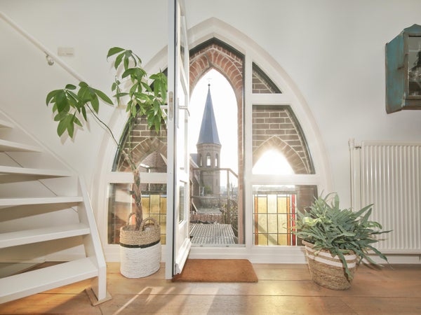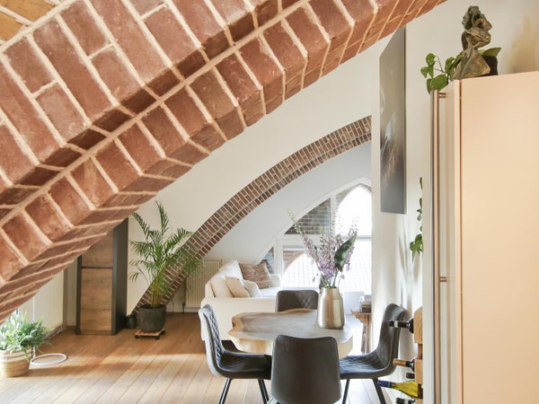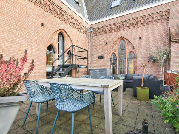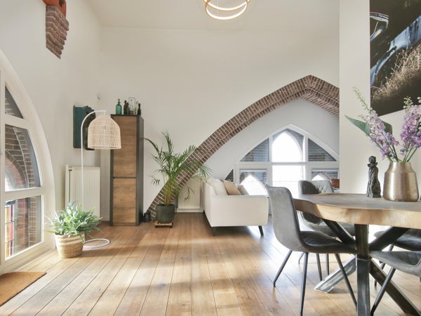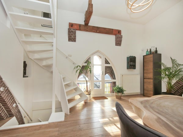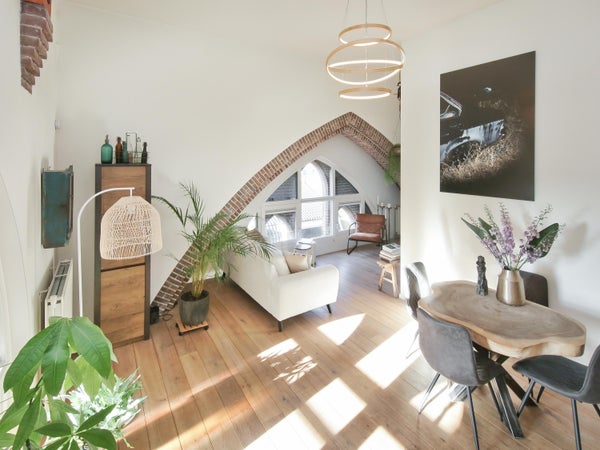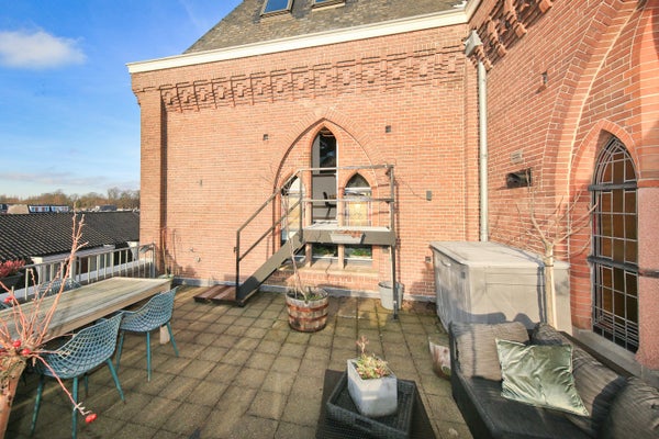 Wonen in een voormalige kerk is bijzonder. Deze speelse maisonnette maakt deel uit van de Elbakerk, die in 2001 is vernieuwd tot appartementencomplex. Authentieke elementen zoals de gewelven en het originele metselwerk zijn zorgvuldig behouden, wat een unieke uitstraling geeft, samen met modern comfort. De woning heeft een royaal dakterras op het zuidwesten, ideaal voor privacy en mooi uitzicht. Er is ook een loggia naast de slaapkamer. De indeling omvat een ruime slaapkamer, een badkamer die in 2023 is gerenoveerd, en een gezellige woonkamer met eethoek en hoge plafonds. Een tweede slaapkamer met aparte kast bevindt zich op de bovenste verdieping. De ligging nabij winkels, een station en natuur maakt dit tot een ideale woning.