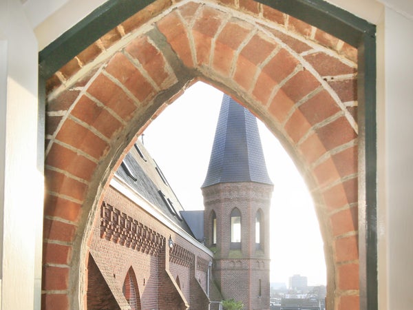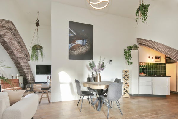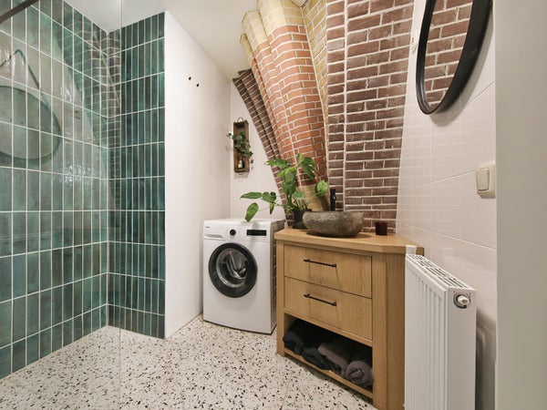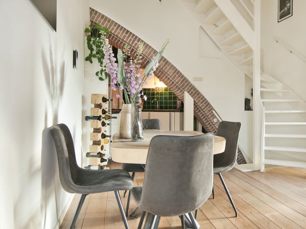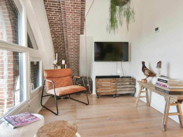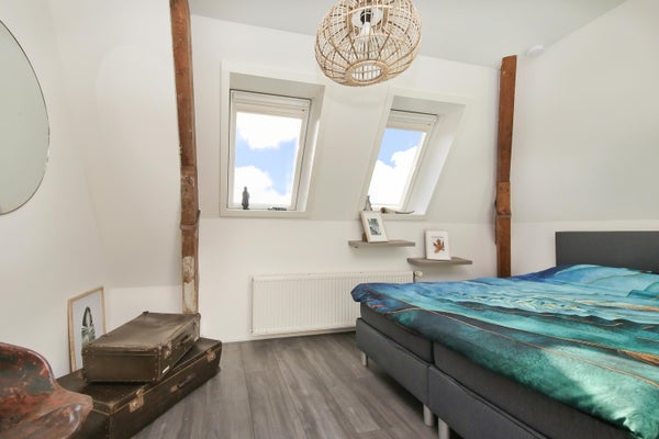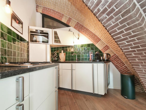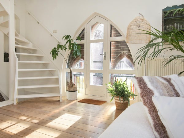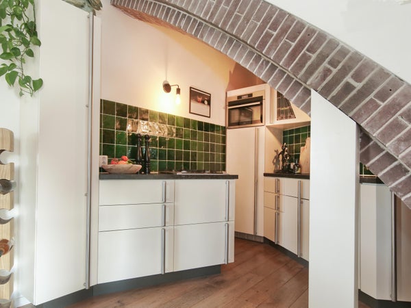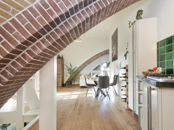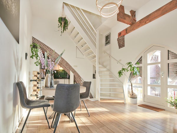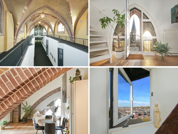 Wonen in een voormalige kerk is bijzonder. Deze speelse maisonnette maakt deel uit van de Elbakerk, die in 2001 is vernieuwd tot appartementencomplex. Authentieke elementen zoals de gewelven en het originele metselwerk zijn zorgvuldig behouden, wat een unieke uitstraling geeft, samen met modern comfort. De woning heeft een royaal dakterras op het zuidwesten, ideaal voor privacy en mooi uitzicht. Er is ook een loggia naast de slaapkamer. De indeling omvat een ruime slaapkamer, een badkamer die in 2023 is gerenoveerd, en een gezellige woonkamer met eethoek en hoge plafonds. Een tweede slaapkamer met aparte kast bevindt zich op de bovenste verdieping. De ligging nabij winkels, een station en natuur maakt dit tot een ideale woning.