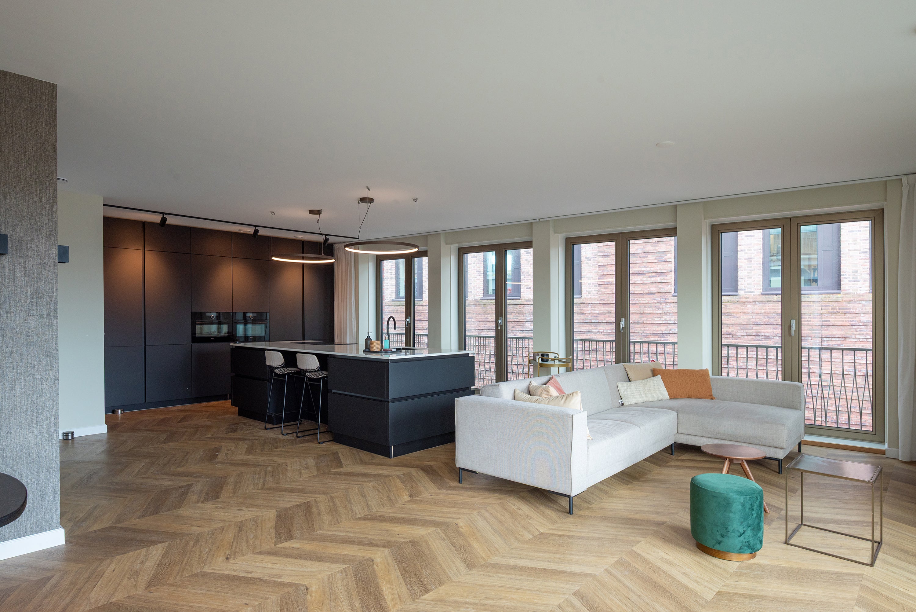 - De galerijflat heeft een woonoppervlakte van 121 m² en beschikt over 3 kamers, waarvan 2 slaapkamers;