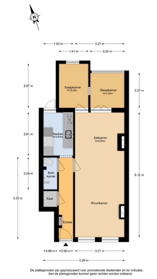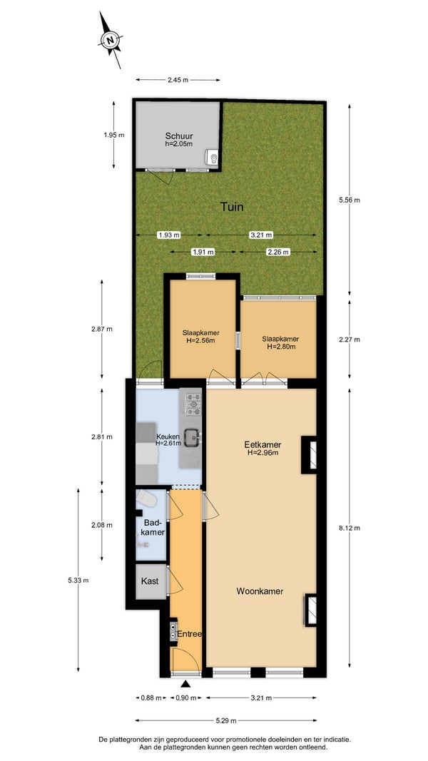 - Aanwezig (29 m², gelegen op het noordwesten)