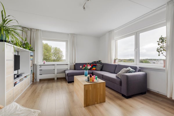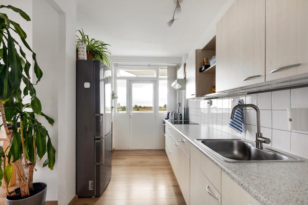 - De portiekflat heeft een woonoppervlakte van 99 m² en beschikt over 4 kamers, waarvan 3 slaapkamers;