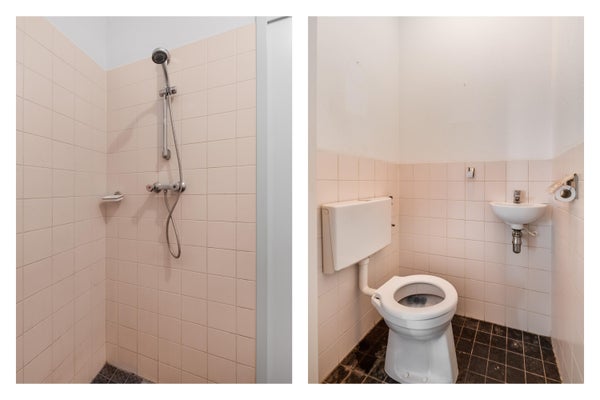 - Badkamer met douche, wastafel en aansluiting wasmachine/droger