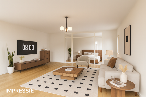 - Mogelijkheid om een deel van de woningkamer af te scheiden als extra slaapkamer (zie artist impression)