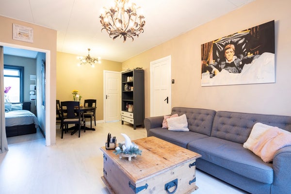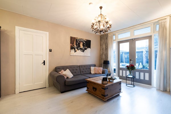 Zie jij de potentie om hier je eigen woning van te maken? We hebben een Artist Impression bijgevoegd om je een idee te geven als je de muur achter de bank naar de keuken verwijderd en een nieuwe achterpui/keuken plaatst. Dit hoeft natuurlijk niet gelijk maar een muur verwijderen geeft een heel ruimtelijk gevoel! De woning heeft leuke jaren '30 details, twee slaapkamers, is netjes maar heeft ook nog veel potentie en heeft al twee ruime tuinen. Één tuin aan de voorzijde met een eigen fietsenberging en een ruime en zonnige aan de achterzijde waar je bijna de hele dag van de zon kan genieten. Laat de lente maar komen! De achtertuin is groot genoeg om eventueel de woonkamer enkele meters te vergroten door een uitbouw te plaatsen mocht dit gewenst zijn. De woning is slim ingedeeld en heeft twee slaapkamers. De hele woning is reeds voorzien van dubbel glas.