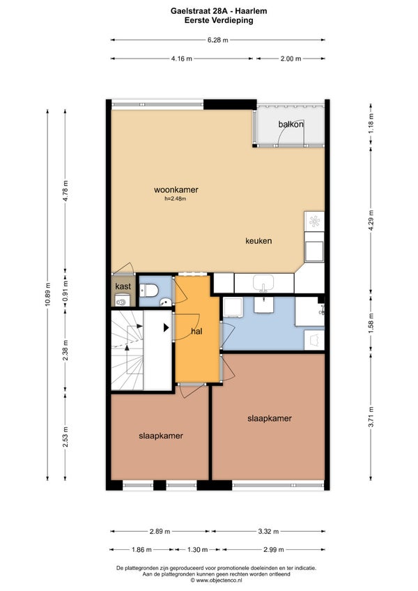 - De portiekflat heeft een woonoppervlakte van 62 m² en beschikt over 3 kamers, waarvan 2 slaapkamers;