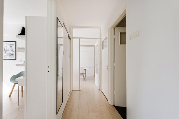 - De portiekflat heeft een woonoppervlakte van 77 m² en beschikt over 4 kamers, waarvan 2 slaapkamers;