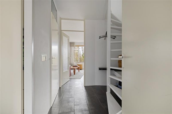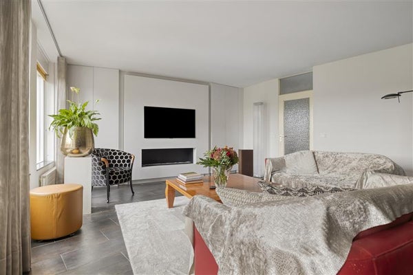 Grenzend aan de keuken bevindt zich de woonkamer. Deze ruime en lichte ruimte profiteert van grote raampartijen die zorgen voor een aangename lichtinval gedurende de dag. De inbouw kastenwand met gas Lijnhaard maakt het extra gezellig, vooral op koudere dagen. Of je nu ontspant na een drukke dag of vrienden ontvangt, deze woonkamer voelt gelijk als een fijne plek om te verblijven.
