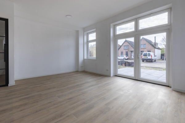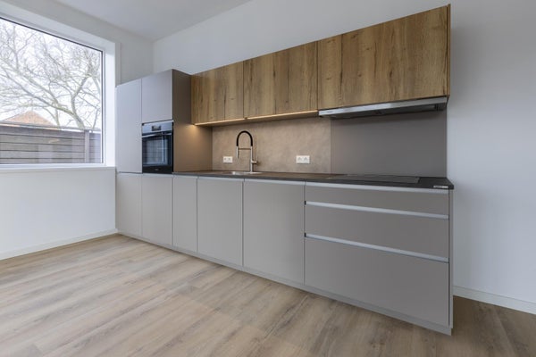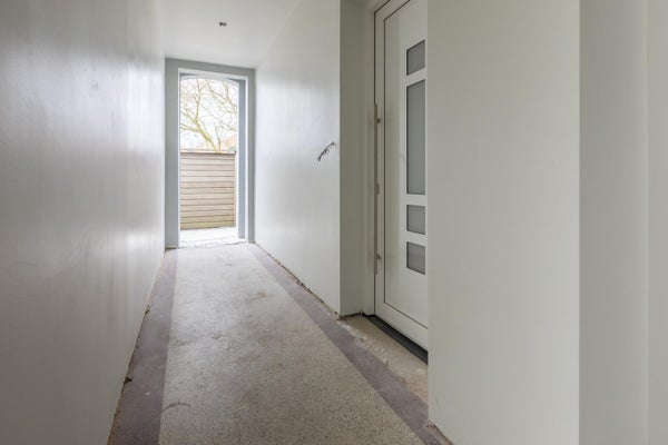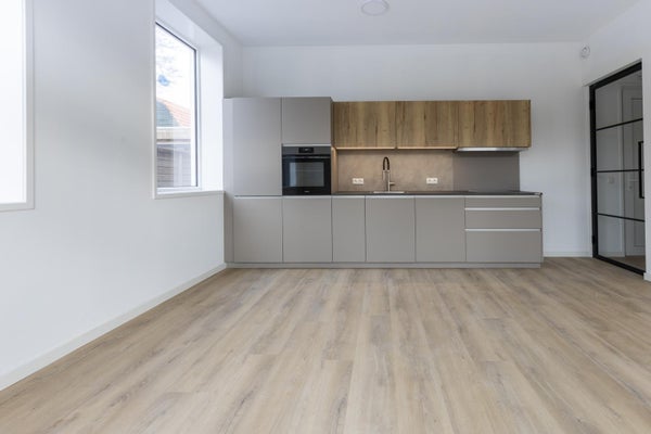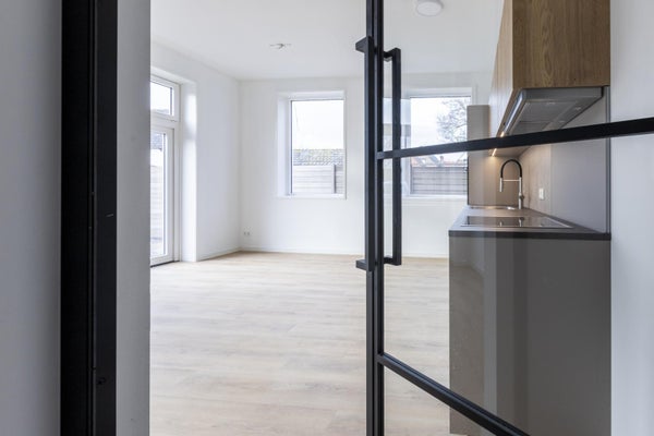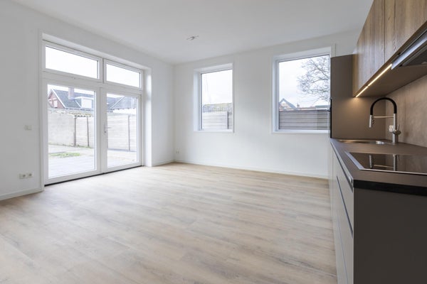 Achter de voordeur kom je in de hal. De slaapkamer is ca. 10 m2. Naast de slaapkamer is een keurige badkamer met een inloopdouche en wastafelmeubel. Er si een separaat toilet. De woonkamer is opvallend licht door de openslaande tuindeuren aan de achterkant en de ramen in de zijgevel. Er is een open keuken voorzien van een combi-oven, vaatwasser, koelkast, inductiekookplaat en afzuigkap. De woonkamer is ca. 25m2 groot . Via de tuindeuren stap je zo je tuin in met een flink terras en wat ruimte voor groen.