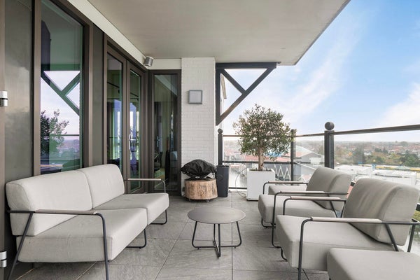 Het appartement is voorzien van een uitgebreid domotica systeem, glasvezelverbinding, vloerverwarming en een gebalanceerd ventilatiesysteem, wat een comfortabele en energiezuinige leefomgeving garandeert. Beide slaapkamers zijn luxe afgewerkt en beschikken over een eigen badkamer. De hoofdbadkamer straalt pure ontspanning uit met een ligbad, inloopdouche, dubbele wastafel en toilet. De tweede badkamer is eveneens smaakvol ingericht met een inloopdouche, wastafelmeubel en toilet.