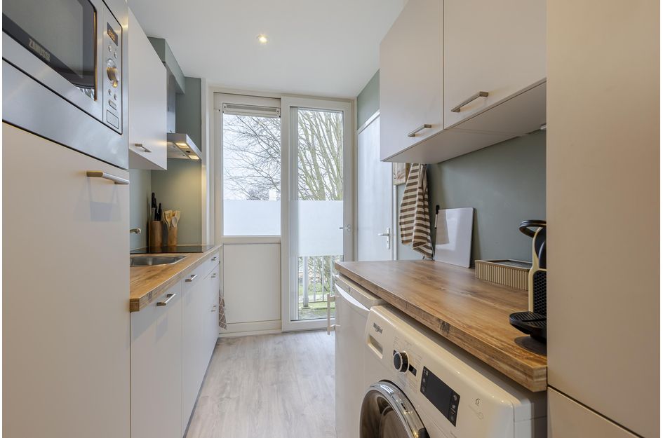De praktische badkamer is voorzien van een douche en wastafelmeubel. Er is ook een ruime berging in het gebouw voor extra opslag. De kunststof kozijnen verlagen het onderhoud en de VvE is financieel gezond, met een bijdrage van €100 per maand. Met voldoende parkeermogelijkheden en alle voorzieningen dichtbij, is dit appartement instapklaar.