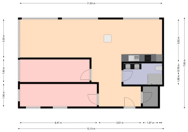 - De benedenwoning heeft een woonoppervlakte van 77 m² en beschikt over 3 kamers, waarvan 2 slaapkamers;