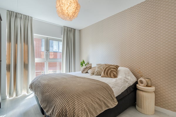 - De portiekflat heeft een woonoppervlakte van 61 m² en beschikt over 2 kamers, waarvan 1 slaapkamer;