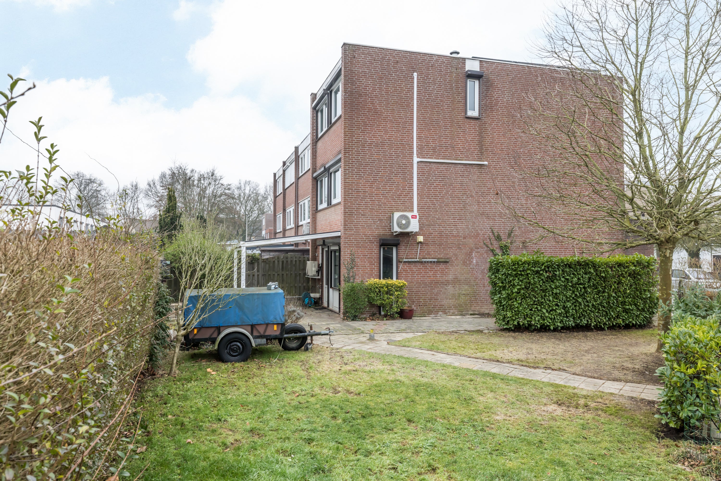 Geniet van de tuin met een overdekt terras en parkeerruimte voor meerdere voertuigen. De woning is energiezuinig met zonnepanelen, een warmtepomp en hoogwaardige isolatie.