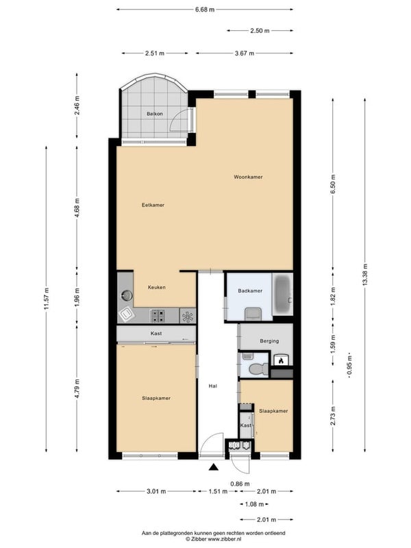 - De portiekflat heeft een woonoppervlakte van 83 m² en beschikt over 3 kamers, waarvan 2 slaapkamers;