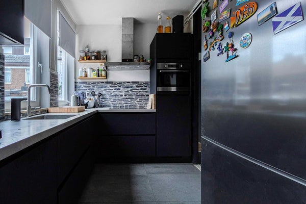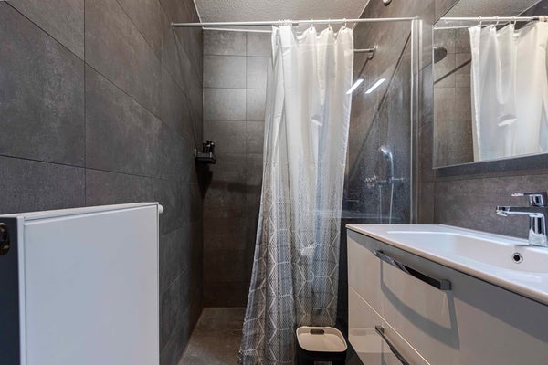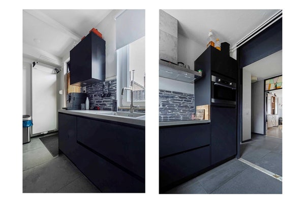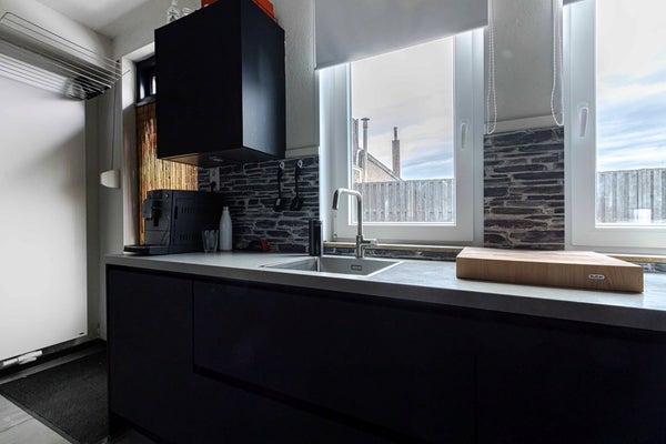 De moderne keuken is uitgerust met diverse inbouwapparatuur, waaronder een inductiekookplaat, afzuigkap, vaatwasser, koelkast en een combimagnetron. Vanuit de keuken is er directe toegang tot het terras aan de achterzijde. In de keuken bevindt zich tevens een aparte kast met de opstelplaats van de cv-ketel – netjes uit het zicht, maar goed bereikbaar. De badkamer is volledig betegeld en voorzien van een inloopdouche, wastafelmeubel en een radiator. Het separate toilet is in dezelfde moderne stijl afgewerkt.