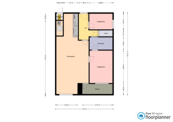 - De galerijflat heeft een woonoppervlakte van 68 m² en beschikt over 4 kamers, waarvan 2 slaapkamers;