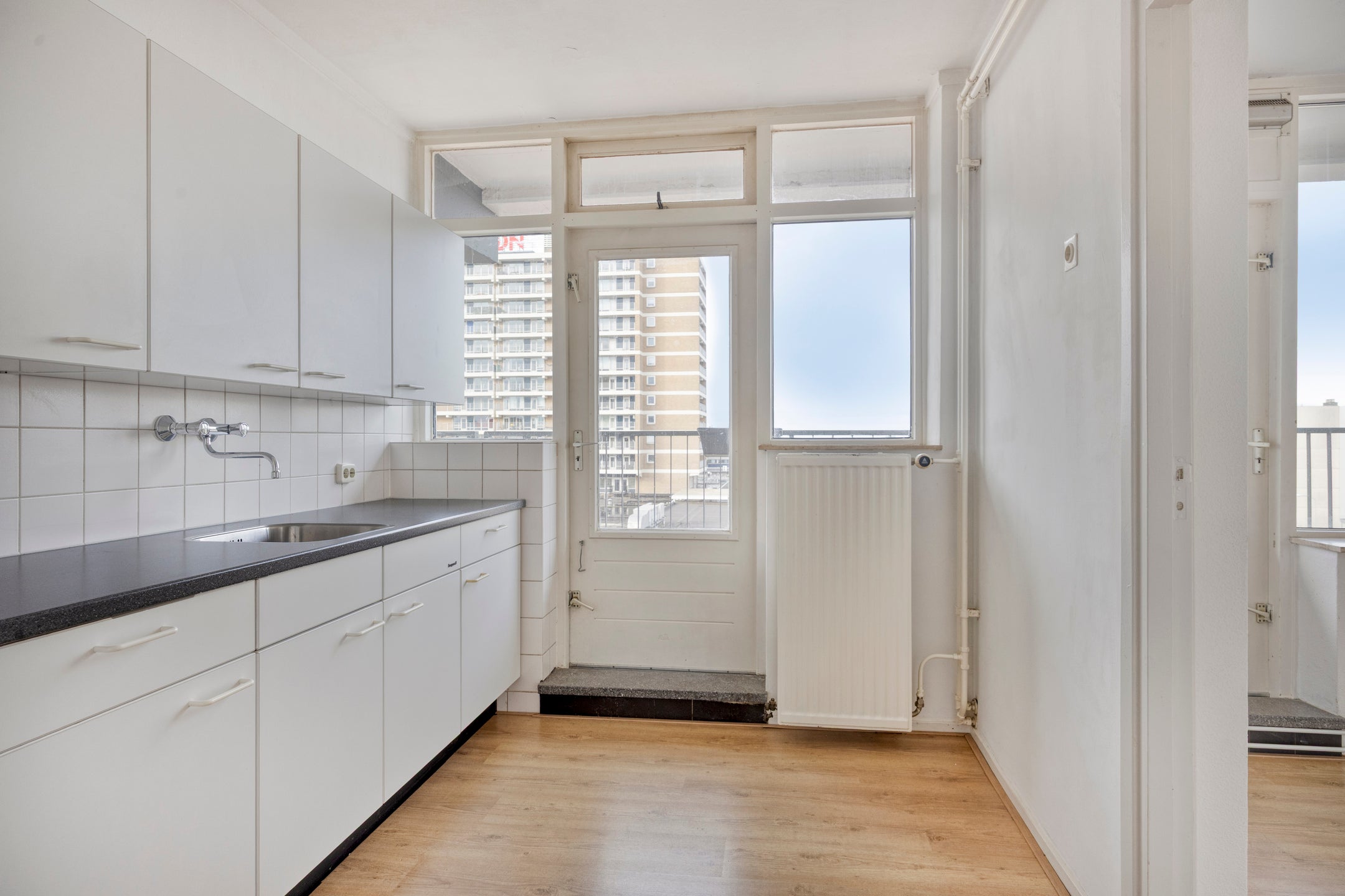 Dit ruime appartement in het hart van het centrum bevindt zich op de vijfde verdieping van de Euterpeflat en biedt een prachtig uitzicht. Het appartement is bereikbaar via een verzorgde, afgesloten entree en heeft twee balkons en een separate bergruimte in het souterrain. De woonoppervlakte van 100 m² bestaat uit een woonkamer met een eetgedeelte en een gesloten keuken die toegang geeft tot het tweede balkon. Er zijn twee slaapkamers, en de badkamer is voorzien van een douche en een wastafel. Het complex is goed bereikbaar, dichtbij winkelcentrum ‚t Loon, en heeft goede parkeerfaciliteiten. De VvE-bijdrage bedraagt € 323,87 per maand, en de verwarming en het warm water zijn centraal geregeld. Onderhoud is redelijk, en het appartement heeft een energielabel B.