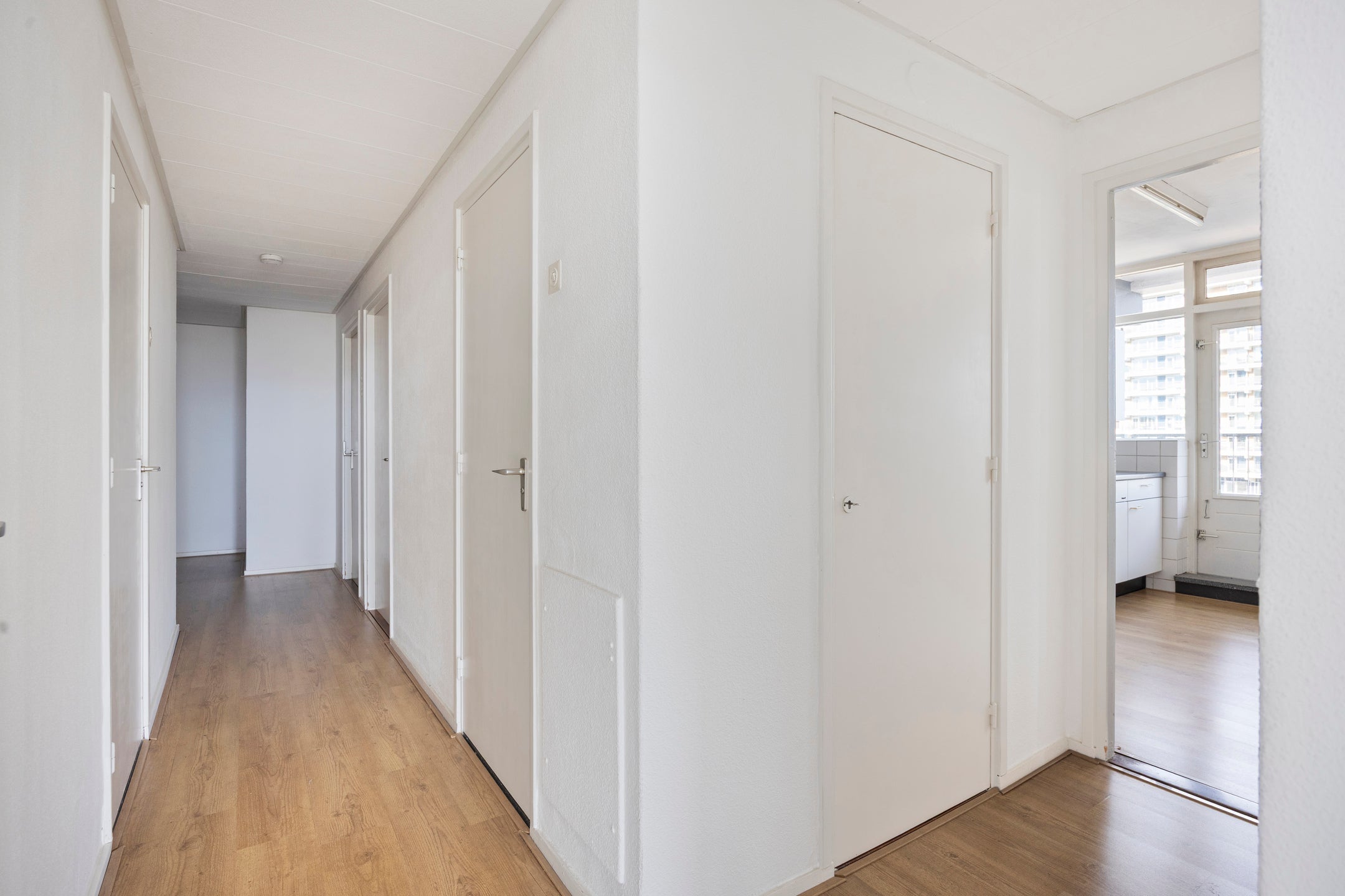 - De galerijflat heeft een woonoppervlakte van 100 m² en beschikt over 7 kamers, waarvan 2 slaapkamers;