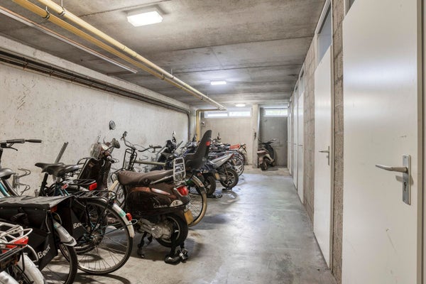 Hoofdingang met bellentableau, brievenbussen en toegang tot zowel het trappenhuis als de lift. Verder beschikt de woning hier over een eigen berging (7 m²) - perfect voor opslag! - en is er een gezamenlijke, afgesloten, inpandige fietsenstalling zodat uw fiets altijd droog en veilig is.