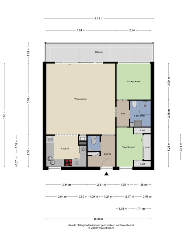 • De galerijflat heeft een woonoppervlakte van 75 m² en beschikt over 3 kamers, waarvan 2 slaapkamers;
