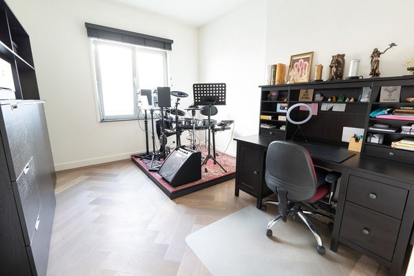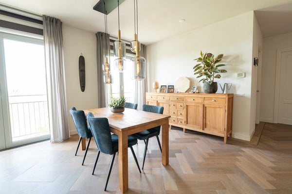 De royale living is een ware blikvanger. Grote ramen en meerdere openslaande deuren zorgen voor een ongekende lichtinval. De eikenhouten visgraatvloer straalt warmte en elegantie uit. De woonkamer heeft directe toegang tot een balkon, dat de perfecte plek is om te genieten van het levendige uitzicht. Daarnaast zijn er twee Franse balkons met openslaande deuren, die het gevoel van licht en buitenleven versterken en zorgen voor een permanent uitzicht over de historische haven en het Haringvliet. De hoogwaardige, op maat gemaakte raambekleding en schuifhorren zijn een mooie aanvulling op het comfort.