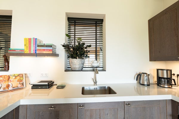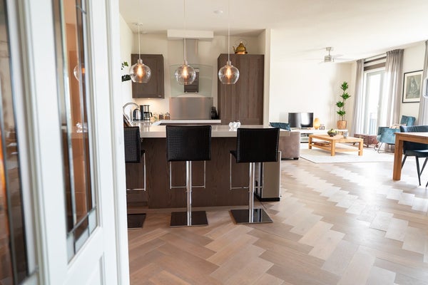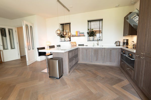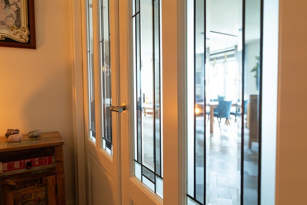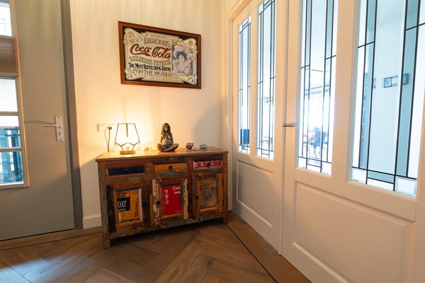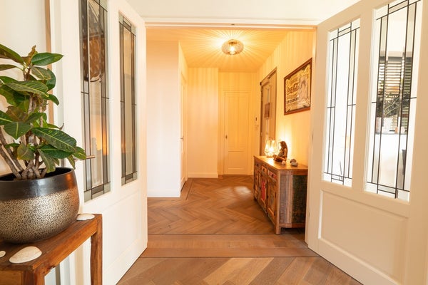 • Luxe afwerking met eiken visgraatvloer en massief houten deuren met glas-in-lood