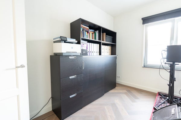 Een zeer praktische en zeldzame eigenschap van dit appartement is de aparte was-/cv-/opbergruimte van circa 8 m². Hier vindt u de opstelling voor de wasmachine en droger, de cv-installatie en extra bergruimte, wat de leefruimte optimaal benut.