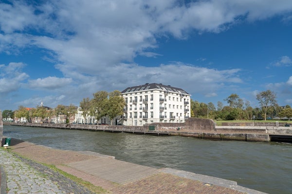 Het appartement heeft twee balkons van circa 2 m² – één aan de woonkamer en één aan de master bedroom – perfect om buiten te zitten en van het uitzicht te genieten. Daarnaast zijn er twee Franse balkons in de woonkamer en nog een Frans balkon en een extra raam in de slaapkamer. Dit zorgt voor een ongekende lichtinval en een permanent gevoel van ruimte en vrijheid, waarbij de historische Vesting en het Haringvliet altijd deel uitmaken van het uitzicht.