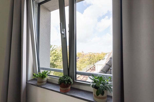Het appartement beschikt over twee ruime slaapkamers. De master bedroom heeft een eigen balkon en een Frans balkon, waardoor u ook hier geniet van een permanente lichtinval en uitzicht. De tweede slaapkamer is eveneens ruim en biedt diverse gebruiksmogelijkheden, van logeerkamer tot studeerkamer.