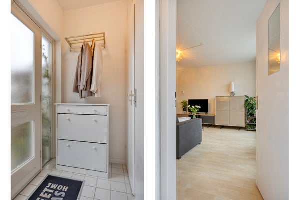 Via de eigen entree kom je binnen in de hal. Hier bevindt zich een praktische bergkast met de unit voor stadsverwarming en de vernieuwde meterkast. Vanuit de hal zijn vrijwel alle vertrekken toegankelijk.
