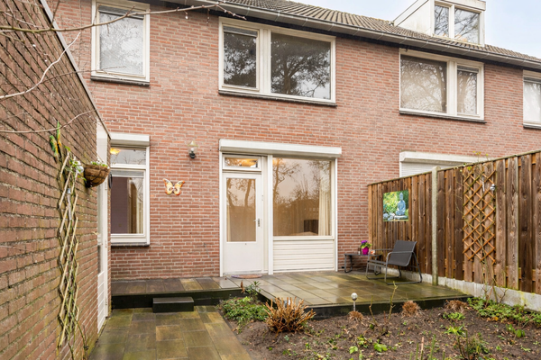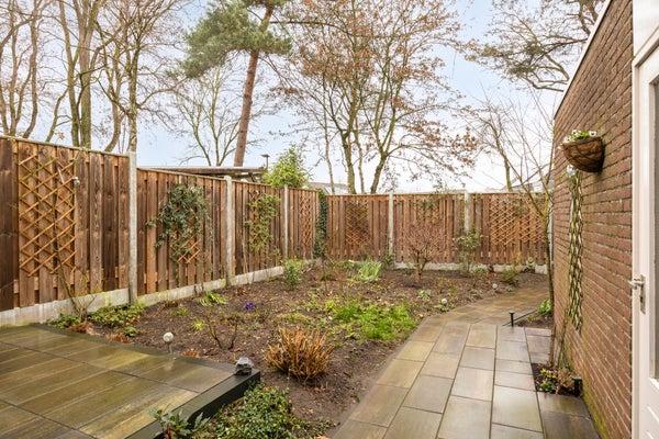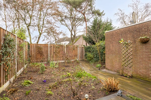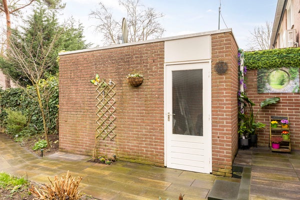Een absoluut pluspunt van deze woning is de diepe achtertuin. De tuin is in 2025 ingericht met een terras, beplanting en een tuinpad, beschikt over een achterom via een poort en heeft een berging voor fietsen en tuinspullen.