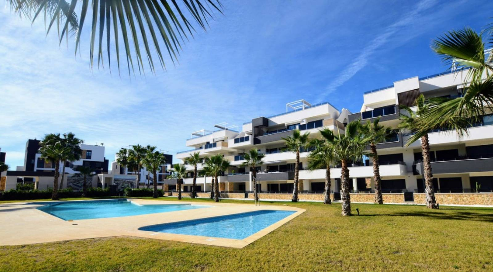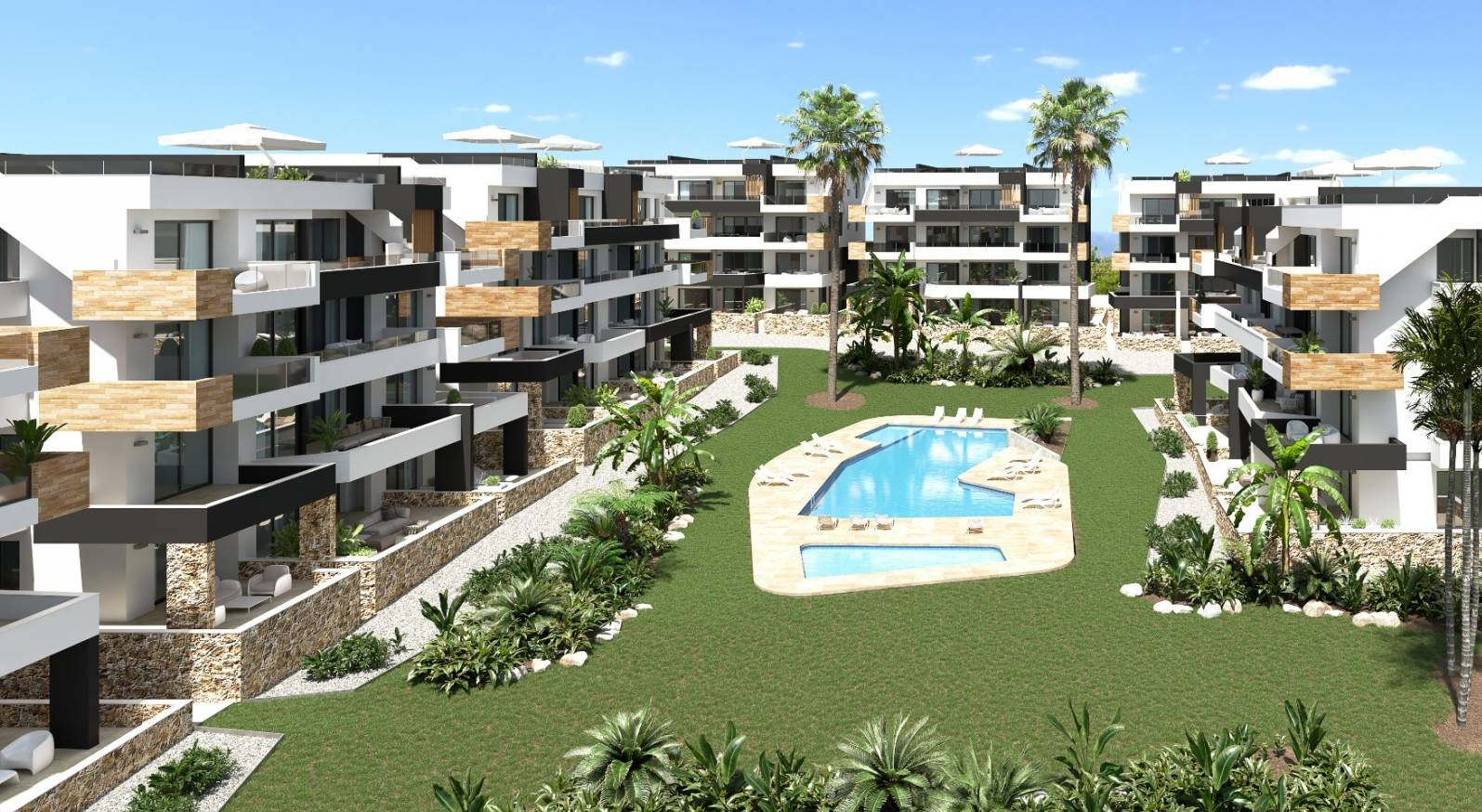 Aan de Costa Blanca zuid bevindt zich een nieuwbouw wooncomplex met 106 appartementen, variërend van 76 m² met 2 slaapkamers en 2 badkamers tot penthouses met 3 slaapkamers en 2 badkamers. De appartementen zijn volledig gemeubileerd en beschikken over grote terrassen, variërend van 22 m² tot 65 m², terwijl de penthouses een solarium van ongeveer 65 m² hebben. Het complex biedt parkeerplaatsen, privé bergingen en heeft 9 blokken met liften. De residentie biedt gemeenschappelijke voorzieningen zoals een zwembad, fitnessruimte, sauna en jacuzzi, gelegen in een rustige buurt vlakbij diverse groene zones. De voorzieningen en het strand liggen op korte afstand, wat het een ideale locatie maakt. Koopsom vanaf € 262.000,-.