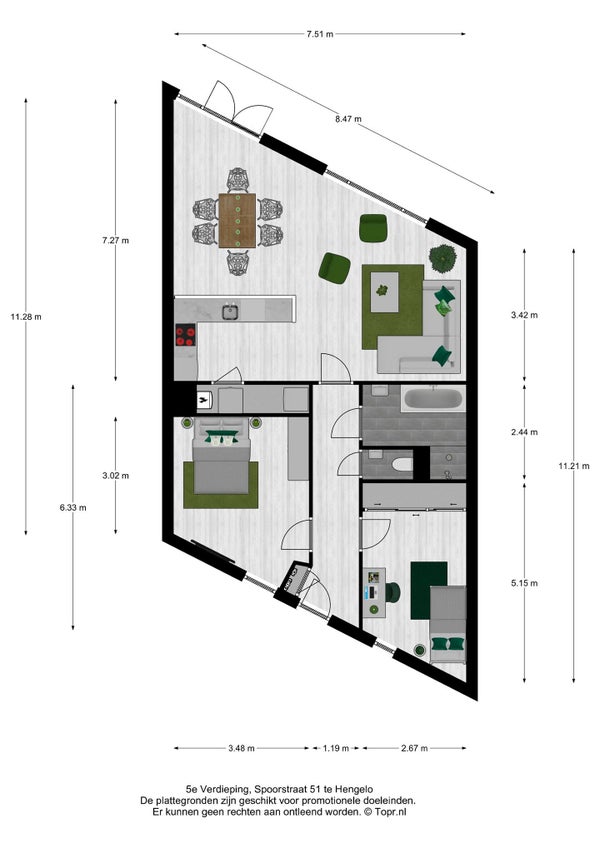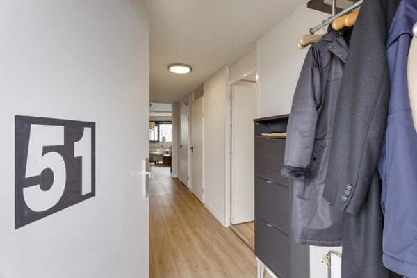 - De galerijflat heeft een woonoppervlakte van 86 m² en beschikt over 3 kamers, waarvan 2 slaapkamers;