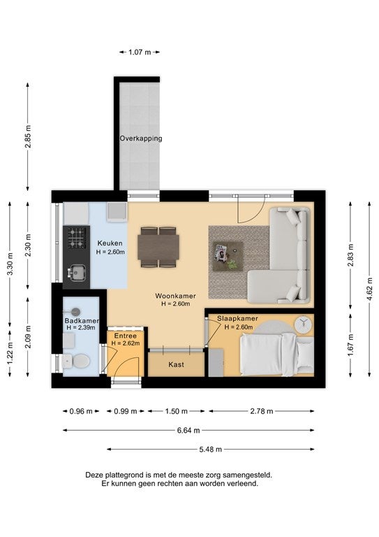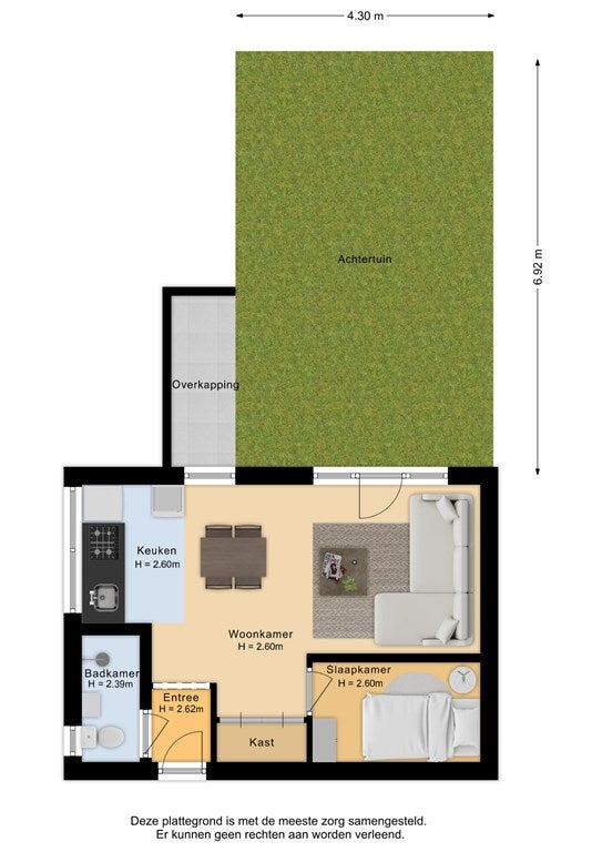 - De benedenwoning heeft een woonoppervlakte van 31 m² en beschikt over 2 kamers, waarvan 1 slaapkamer;