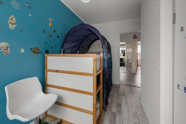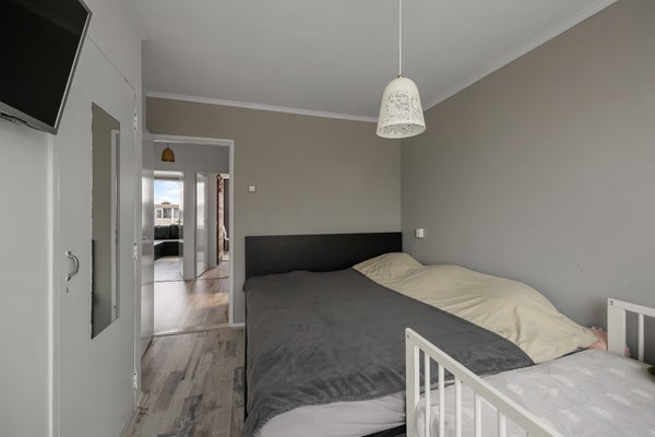 - De galerijflat heeft een woonoppervlakte van 96 m² en beschikt over 5 kamers, waarvan 4 slaapkamers;