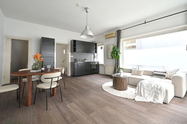 Aan de Vaartweg, aan de rand van het centrum van Hilversum, bevindt zich een compact en praktisch ingedeeld tweekamerappartement op de begane grond, met een bruto vloeroppervlakte van 62 m². De hoge plafonds van ongeveer 3 meter zorgen voor een ruimtelijk effect. De woonoppervlakte is circa 47 m², met een woonkamer van 30 m² en een slaapkamer van 9 m² die toegang biedt tot een eigen entree. De badkamer is uitgerust met een douche, toilet en wastafel. Dit appartement heeft ook een kelderruimte van 15 m², die perfect kan dienen als bergruimte of werkplek. De centrale ligging maakt het gemakkelijk om het winkelcentrum, cafés en het station binnen 15 minuten lopen te bereiken. Het appartement kan direct betrokken worden.