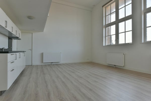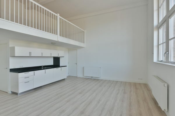 Indeling appartement: bij entree beschikt het appartement over een ruime woonkamer met open keuken. De woonkamer is voorzien van mooie raampartijen en een plafondhoogte van circa 3 meter. In de woonkamer bevindt zich de open keuken, welke is uitgerust met een elektrische kookplaat met geïntegreerde afzuiging, inbouwkoelkast en vaatwasser. Vanuit de woonkamer is direct de eerste badkamer toegankelijk, alsmede de eerste slaapkamer welke zich direct boven de woonkamer bevindt middels een entresol. De gang door bevinden zich de toiletruimte, de tweede badkamer en de overige twee slaapkamers. Er is een inpandige berging met de aansluiting voor de wasmachine en waar de elektrische ketel voor cv en warmwater zich bevindt.